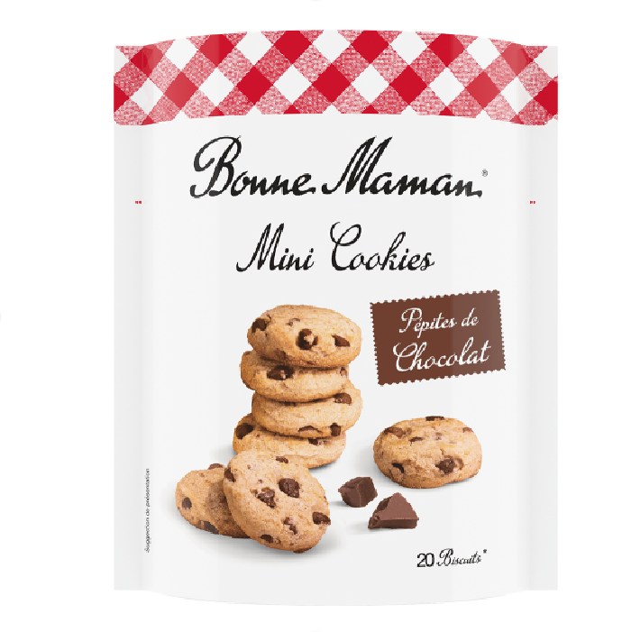 Bonne Maman Mini cookies s kúskami čokolády predstavujú malé potešenie s intenzívnou chuťou pravej čokolády.