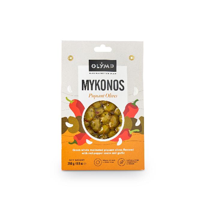 Pikantné zelené olivy s kôstkou, v marináde s pálivou chilli paprikou a cesnakom. Najlepšie zelené olivy z Grécka v balení bez nálevu sú pripravené na okamžitú konzumáciu – ideálne balenie na párty. Balenie vo vákuu uchováva olivy vo vysokej kvalite a čerstvé až 10 dní po otvorení. Výhodné balenie – viac olív ľahko v pohodlnom balení (250 g pevného podielu).